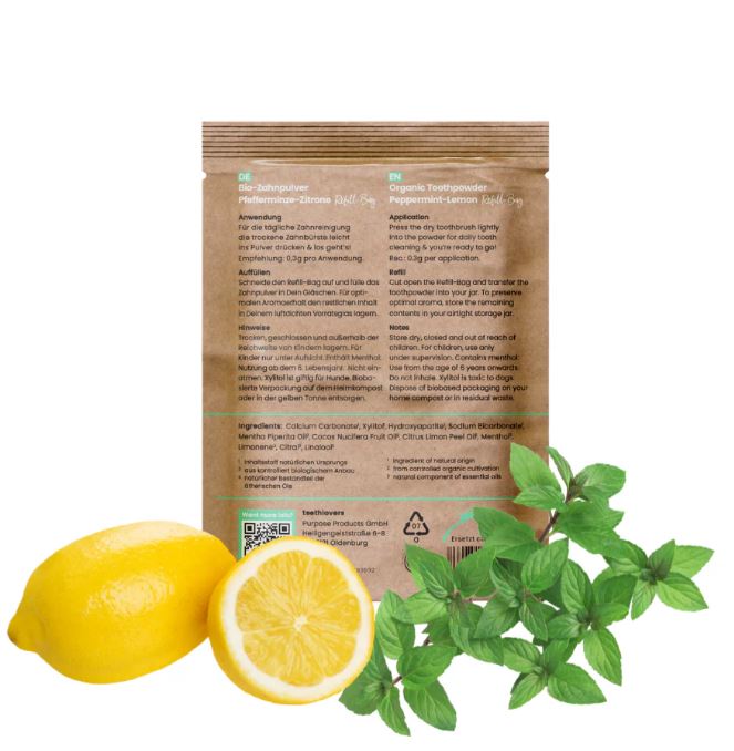 Mit dem REFILL- System kann das Lieblings-Zahnpulver immer wieder nachgefüllt und Aroma-geschützt gelagert werden.