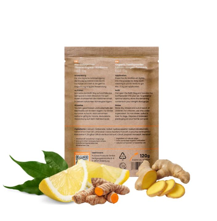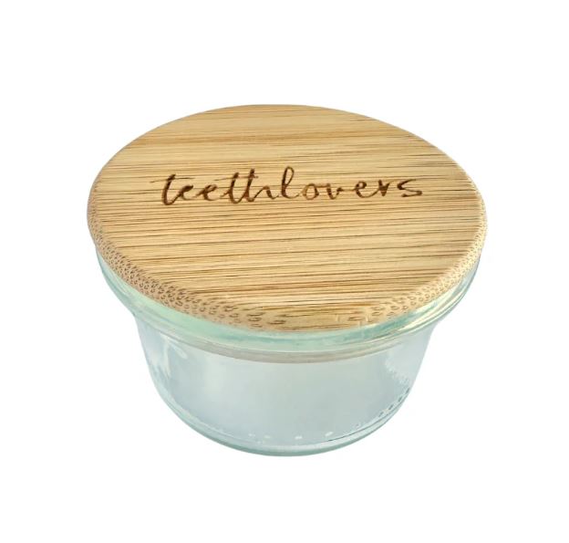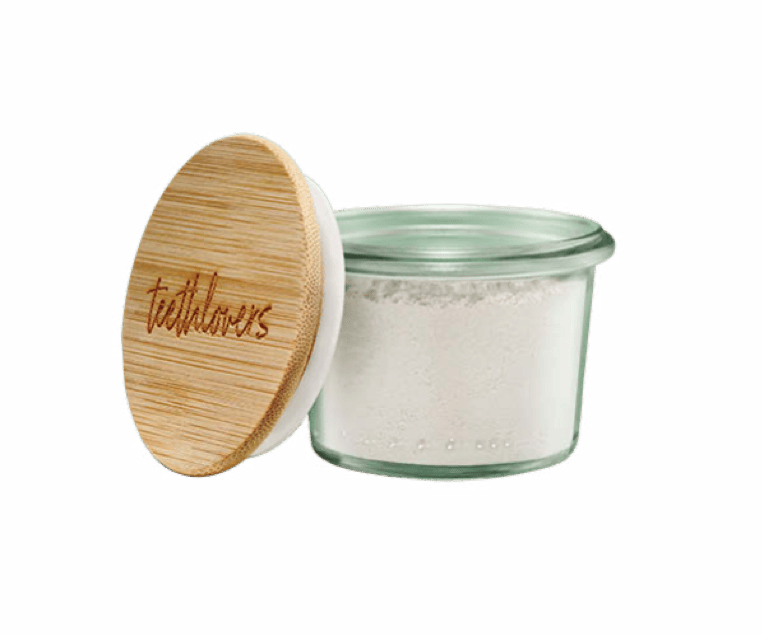 Dazu wird das Zahnpulver in das teethlovers Gläschen mit Bambusdeckel oder ein anderes luftdichtes Gefäßumgefüllt.